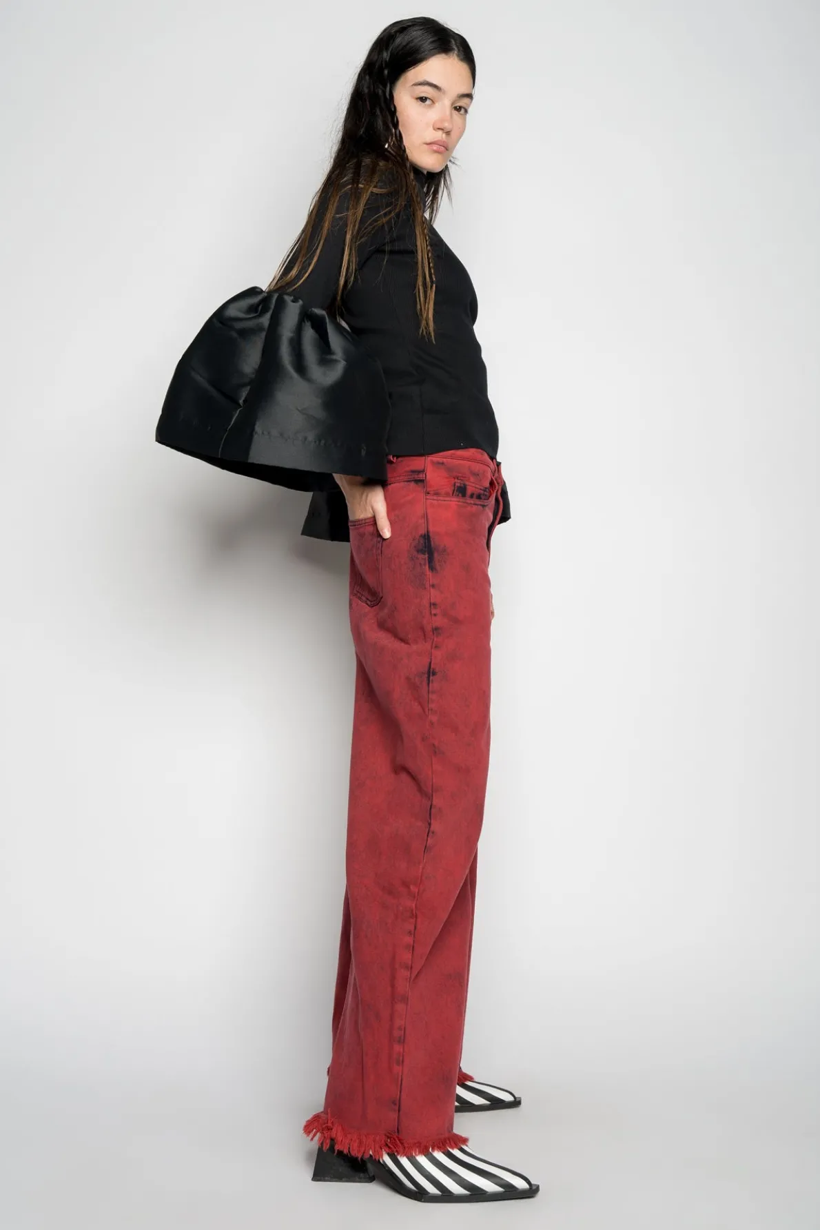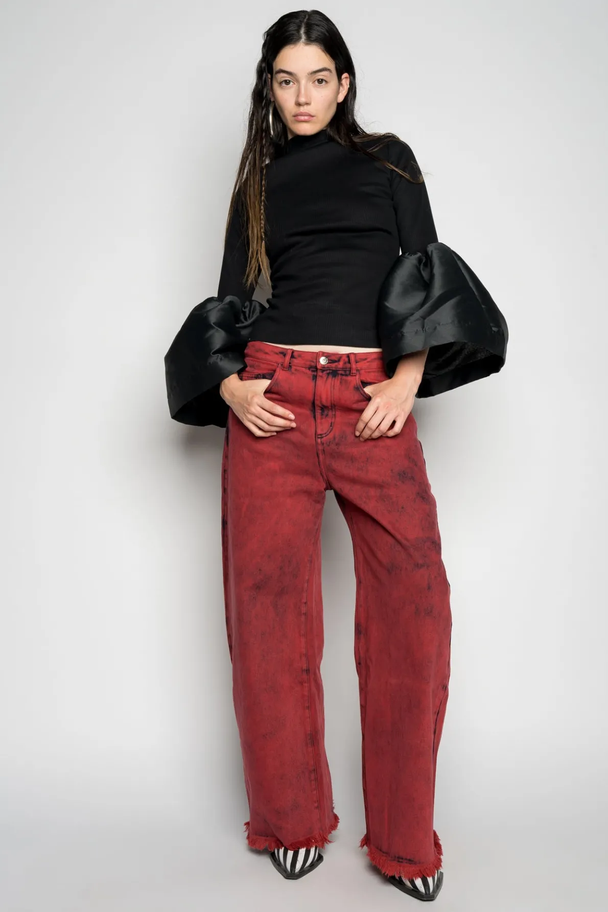 Description: Classic M'A 5-pocket boyfriends in vibrant red overdyed denim. These wide-leg jeans provide a relaxed, dropped-waist fit with an irresistibly raw hem. Fabric: DENIM OVERDYE 43% Refibra / 40% recycled cotton / 17% organic cotton. Made with recycled cotton and dyed using water responsibly size and fi