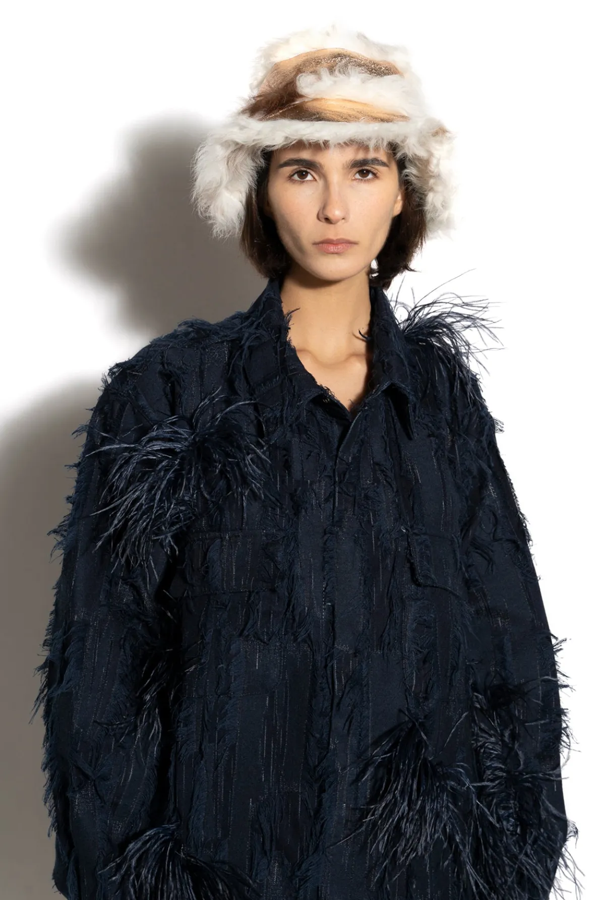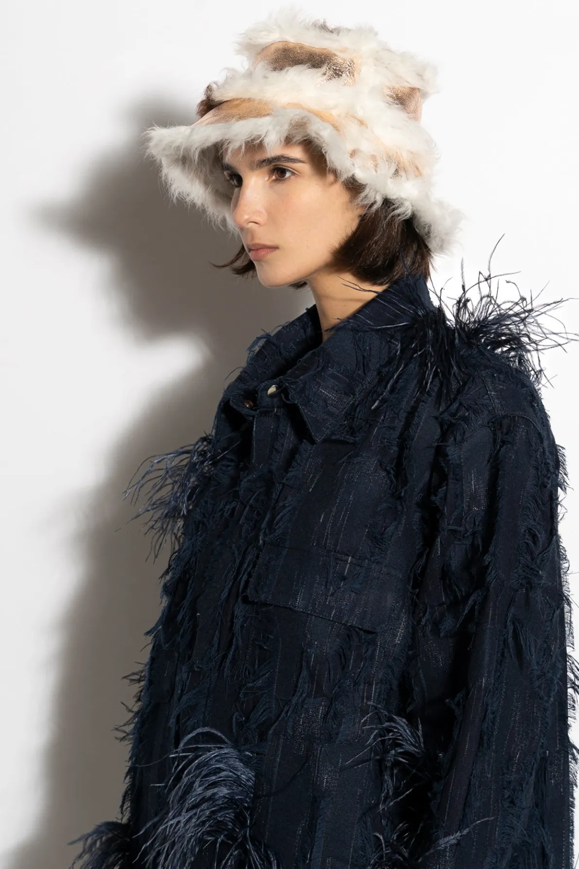 Luxurious rose gold leather bucket hat featuring a striking off white fur trimming! Add unparalleled style to your look with this must-have accessory!• Rose gold• Leather• Shiny• Fur