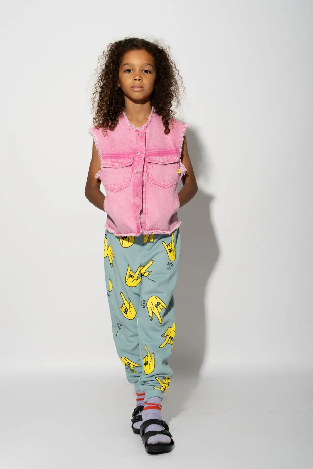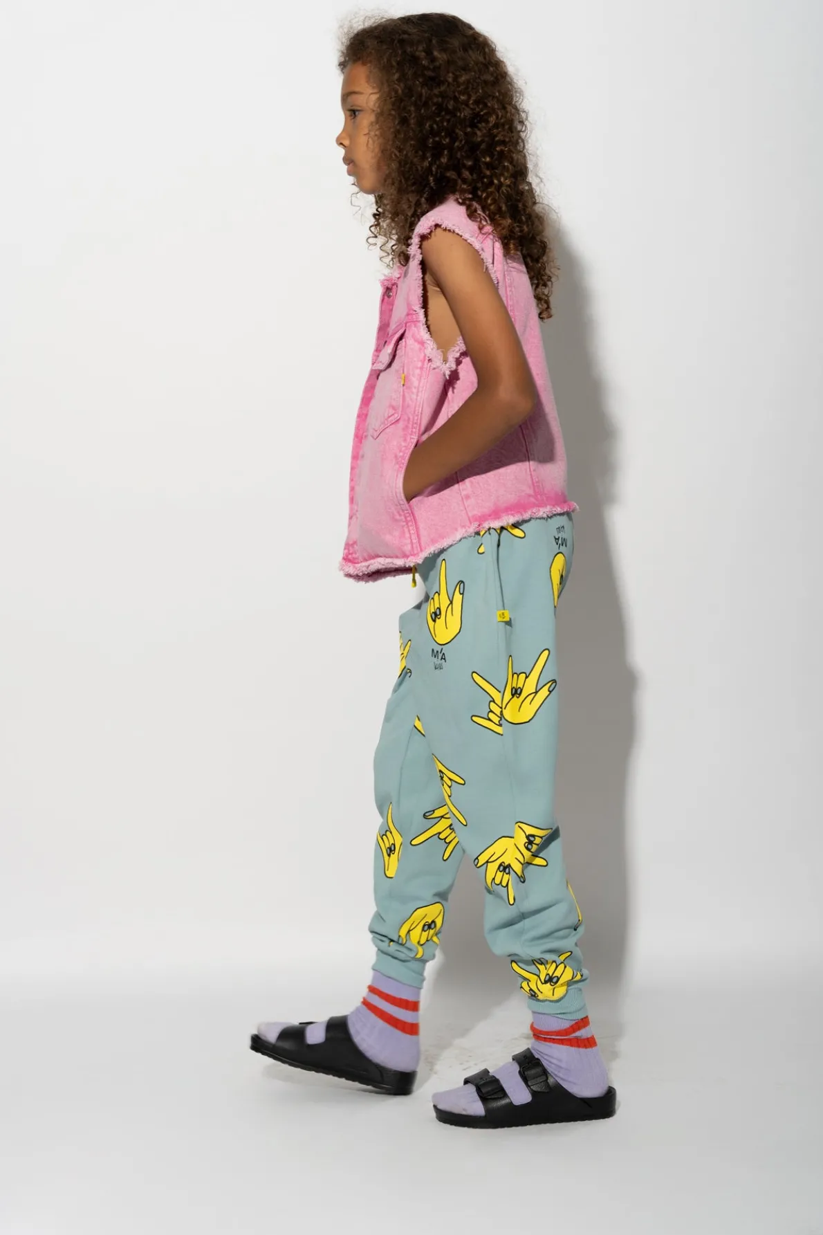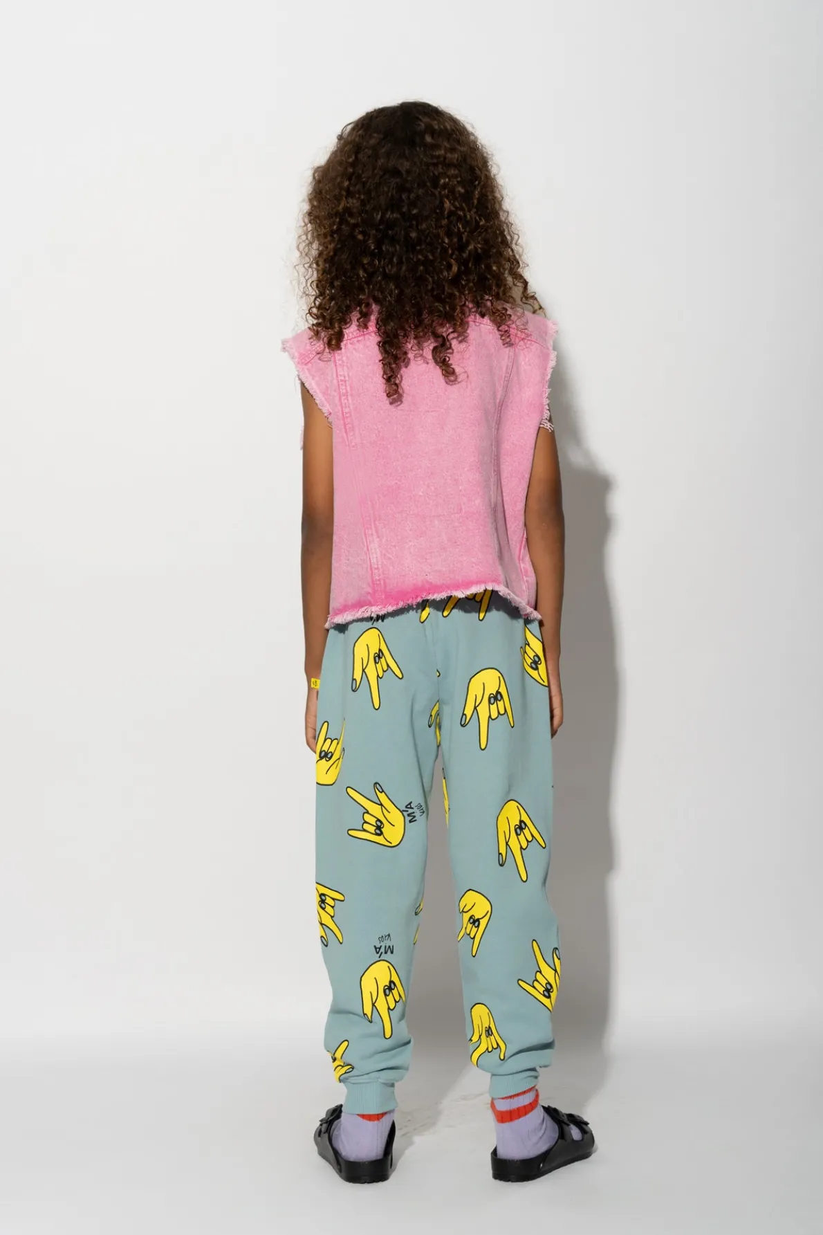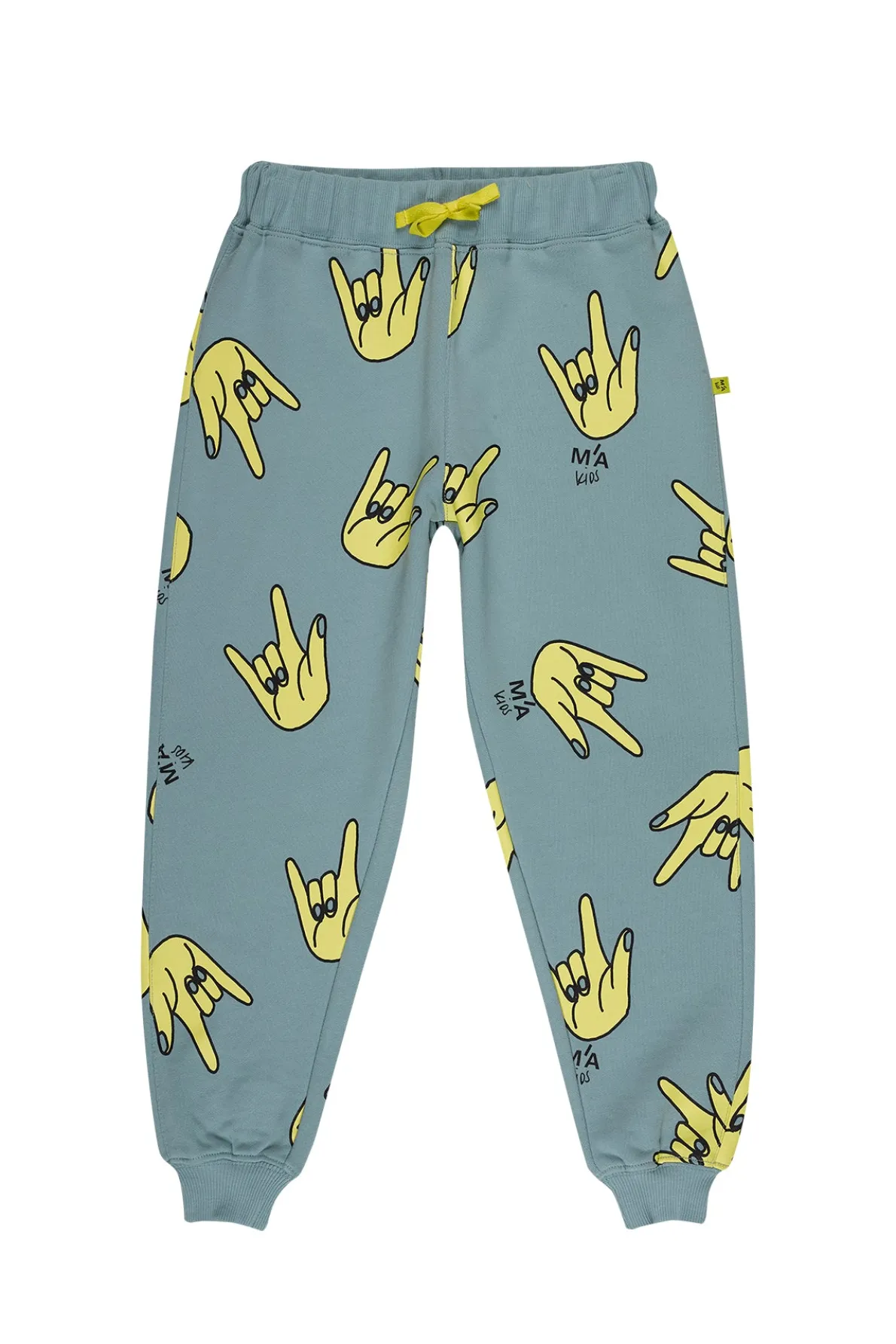 Get ready to show your funky style with these turquoise hand print sweatpants! Made with a comfy elastic waist and hem, these fleece pants are perfect for kids who love to stand out in a playful and quirky way.• Turquoise• All over hands print• Fleece• Elastic waistband