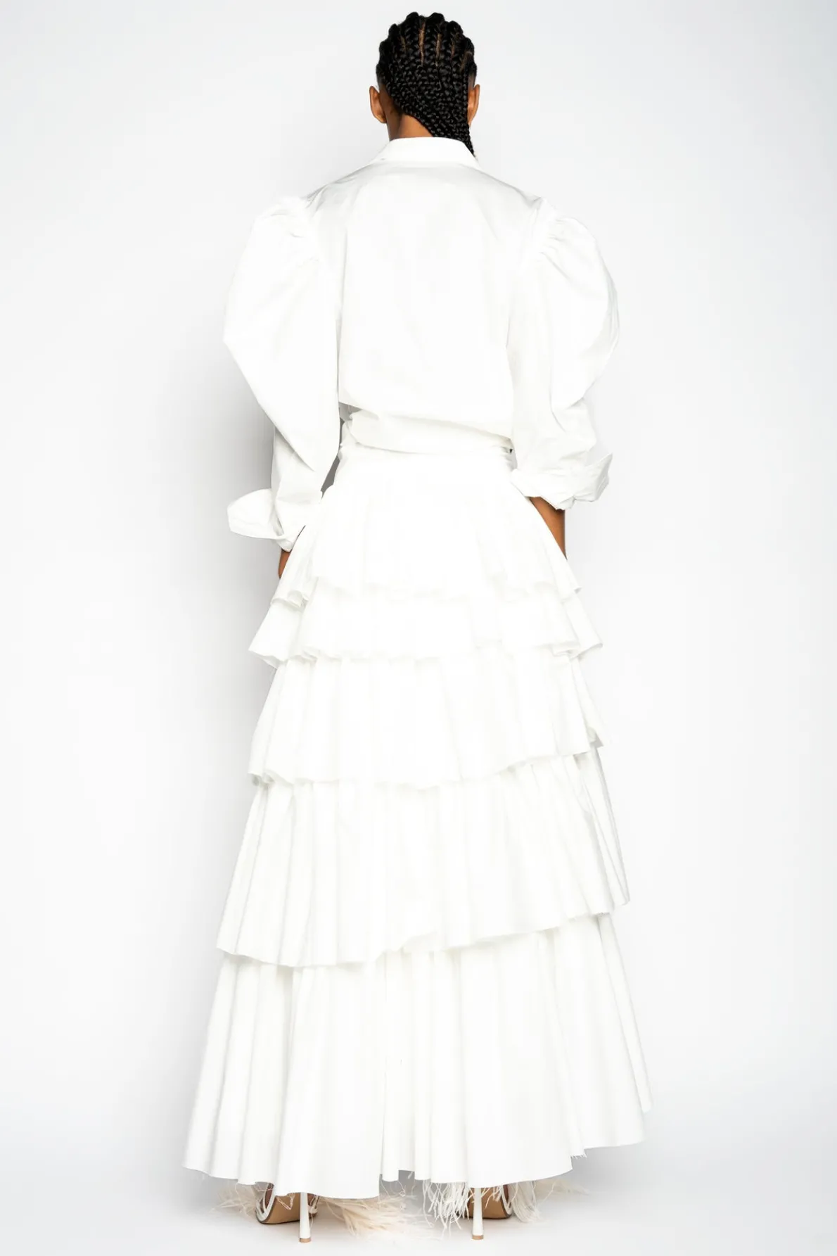 WHITE BALLOON SLEEVE SHIRT