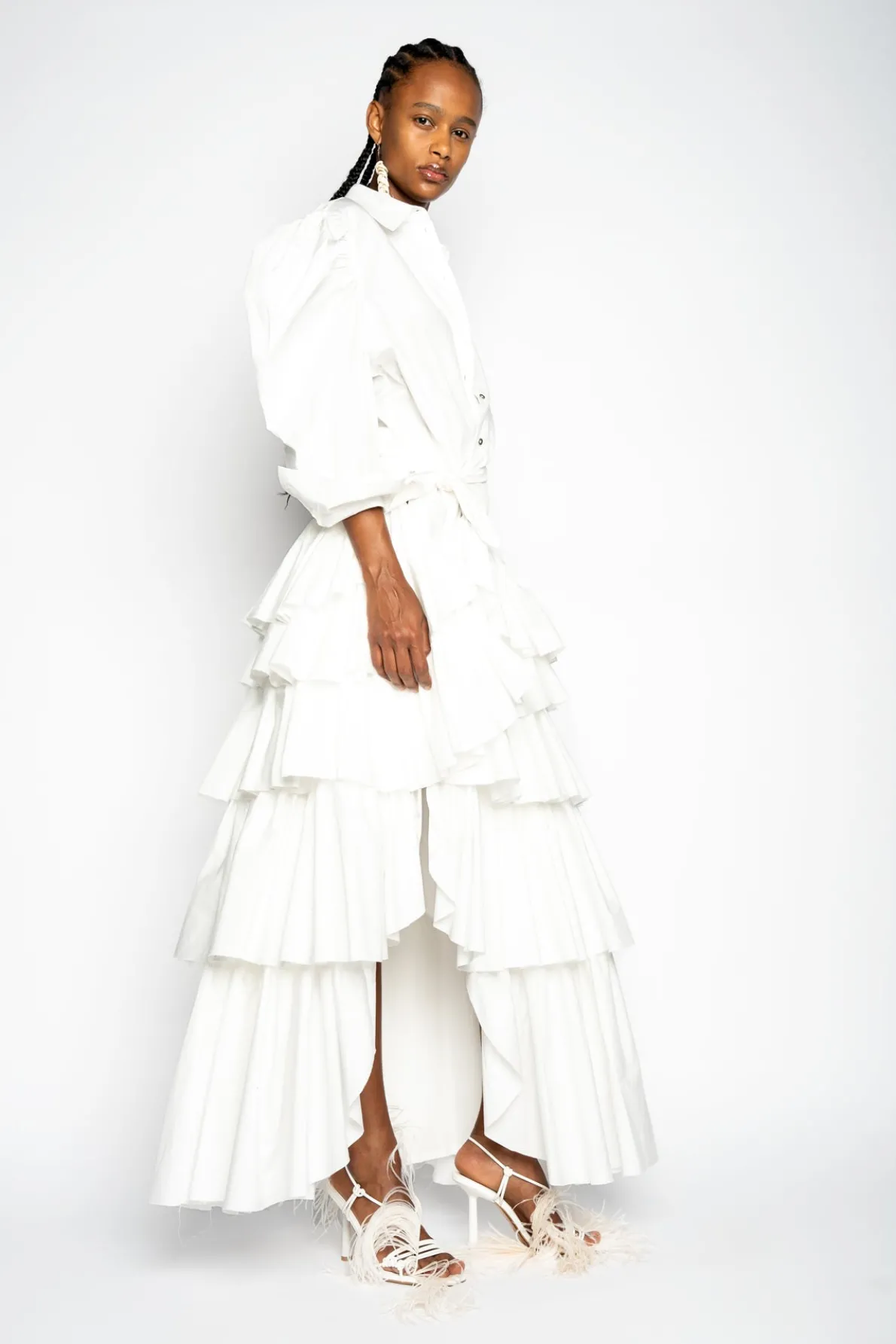 This cotton button-up offers a timeless classic style with its point collar, puffed shoulders, and voluminous balloon sleeves!• Puff shoulders• Long sleeves• Point collar• Front buttons
