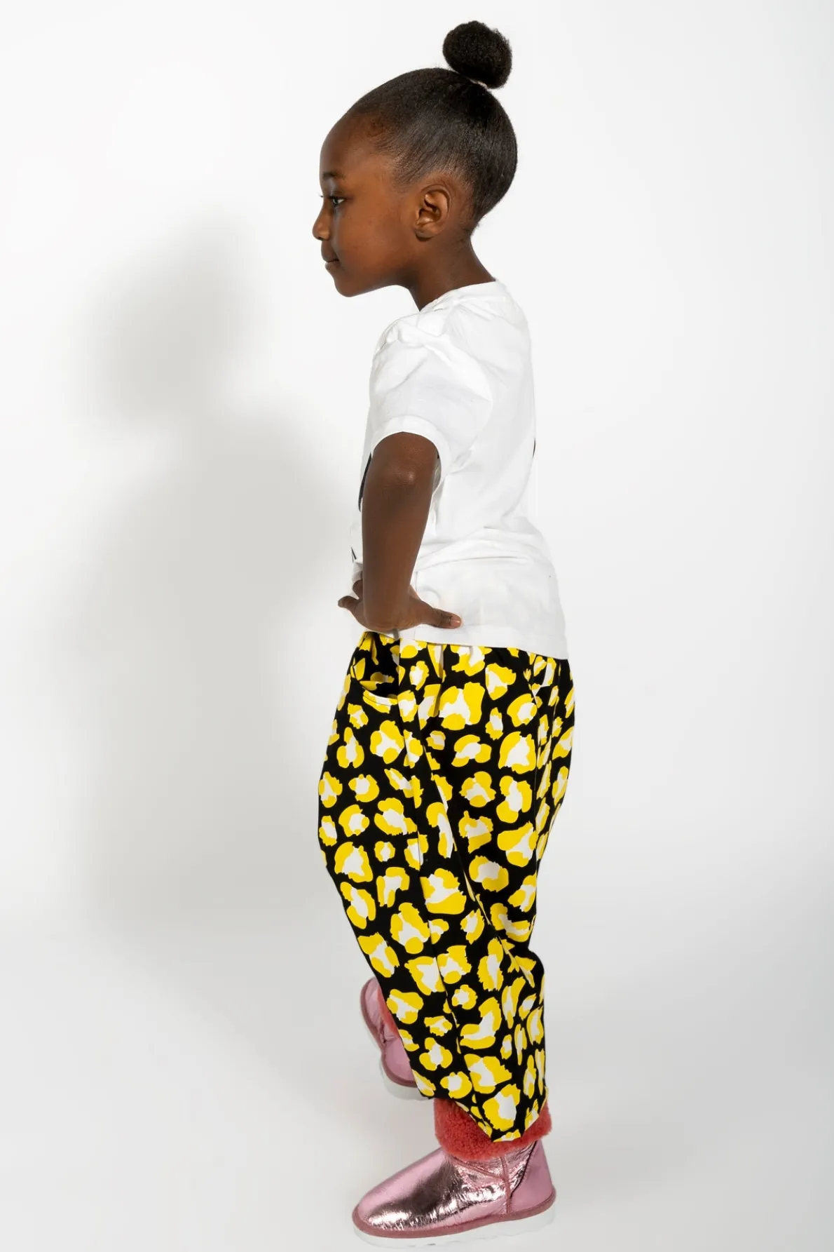 Description: Jersey cap sleeve t-shirt in white with black embroidered M'A KIDS logo. Fabric: Plain Jersey 100% Organic Cotton size and fit: Product in pictures are size 5 years