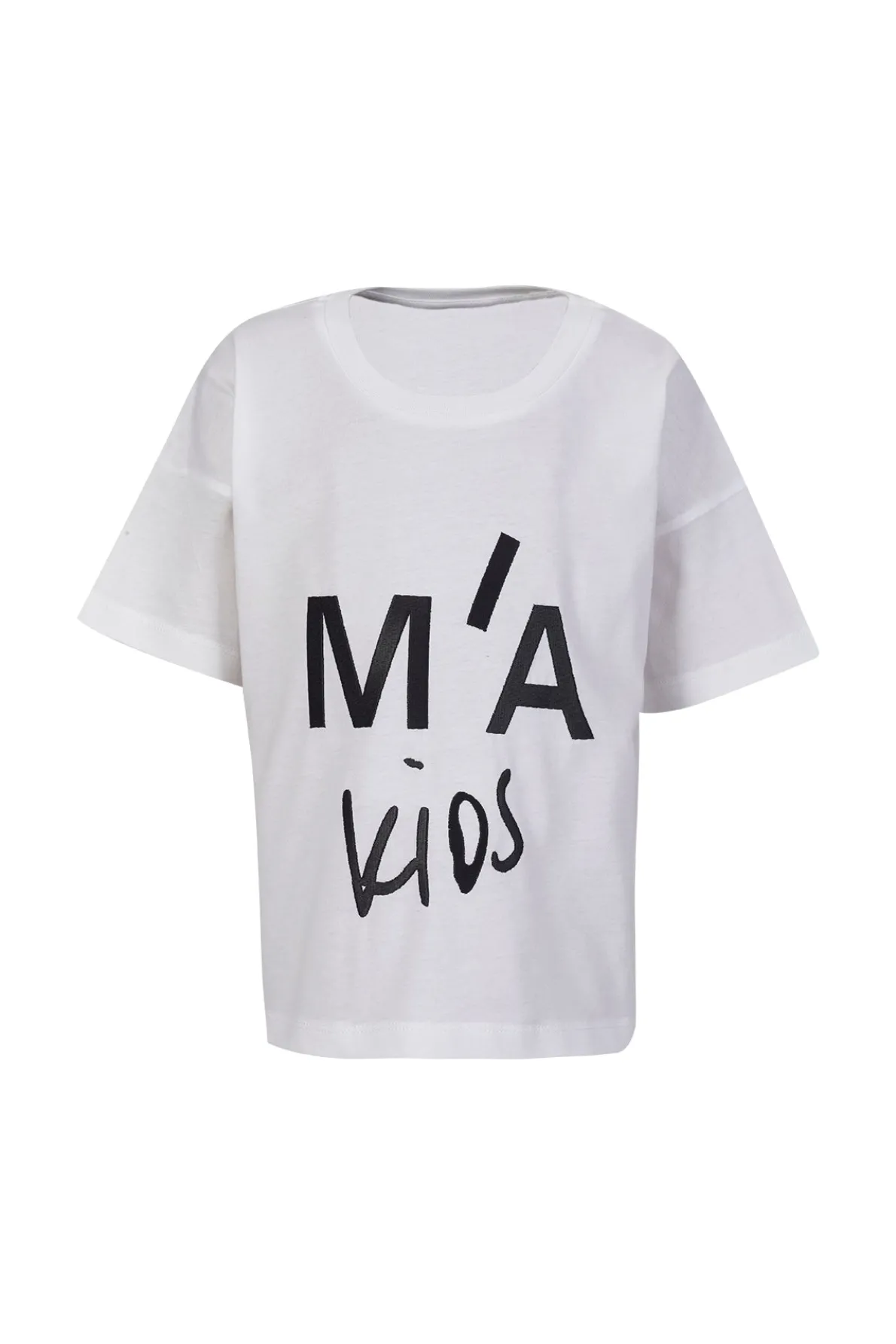 Kid-approved jersey cap sleeve t-shirt in white with black embroidered M'A KIDS logo – a must-have item for your kiddo's cool wardrobe!• Short sleeves• Round neck• Black M'A kids embroidered logo• White cotton