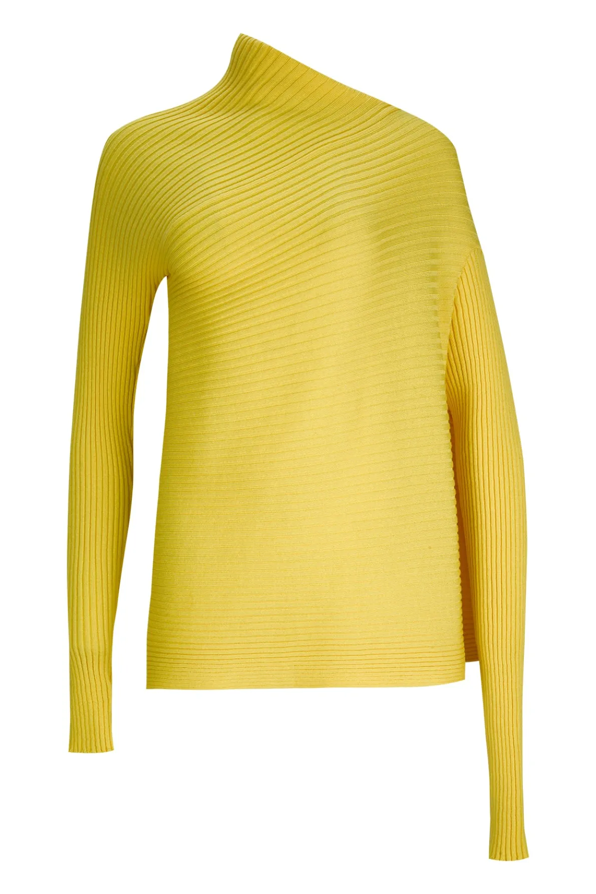 This eye-catching yellow wool jumper is your key to effortless style. Its asymmetric silhouette features a dramatic cowl neck, raw hemlines, and longline sleeves for added drama.• Asymmetric • Draped• Slashed cowl neck• Raw hem