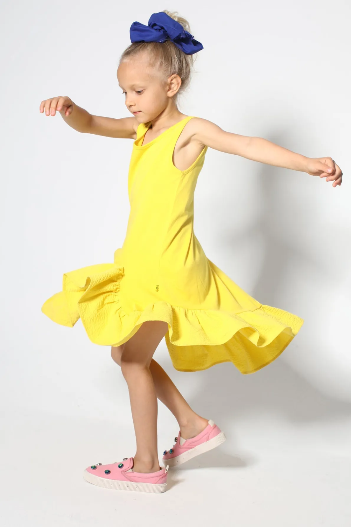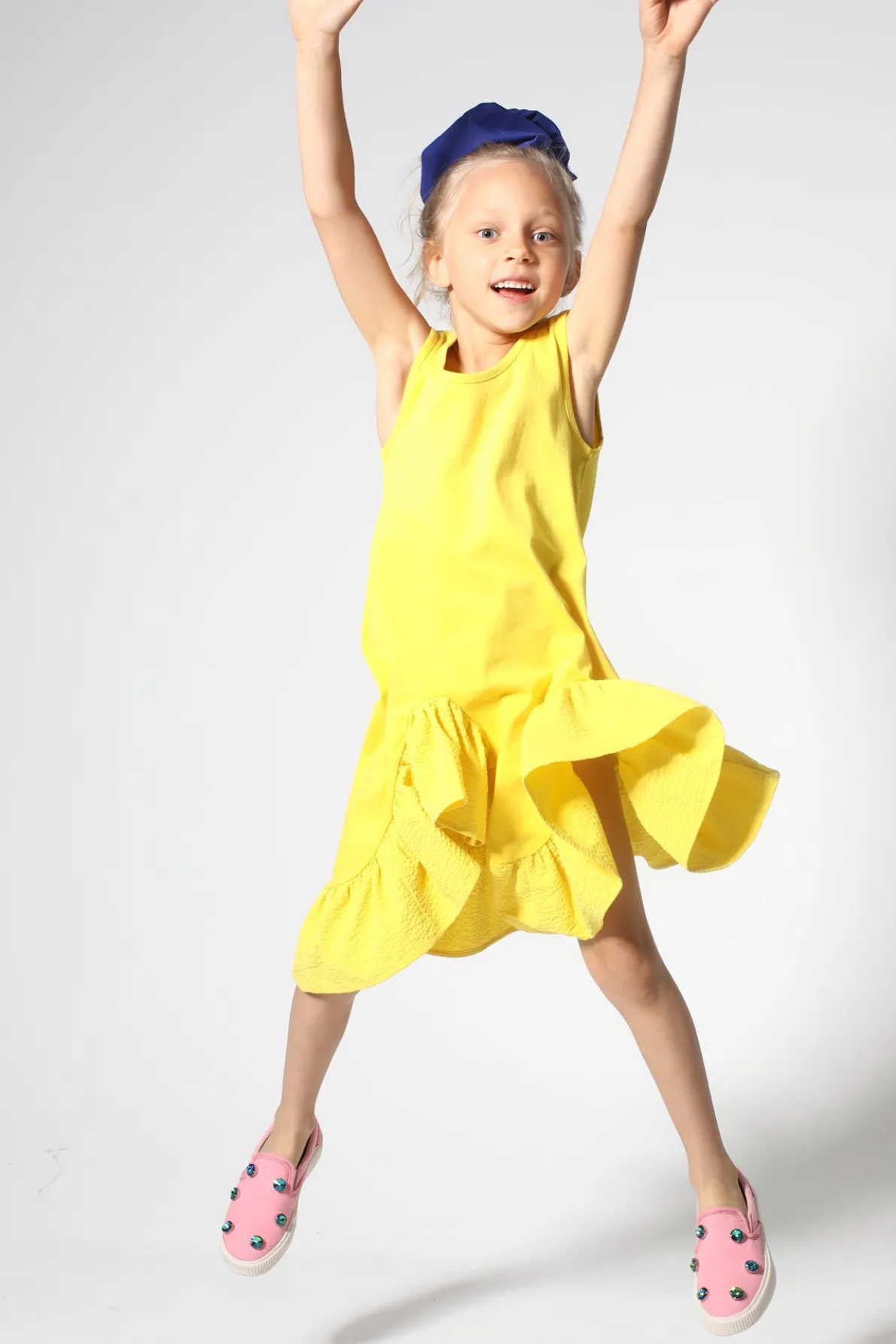 YELLOW SLEEVELESS FLOUNCE DRESS