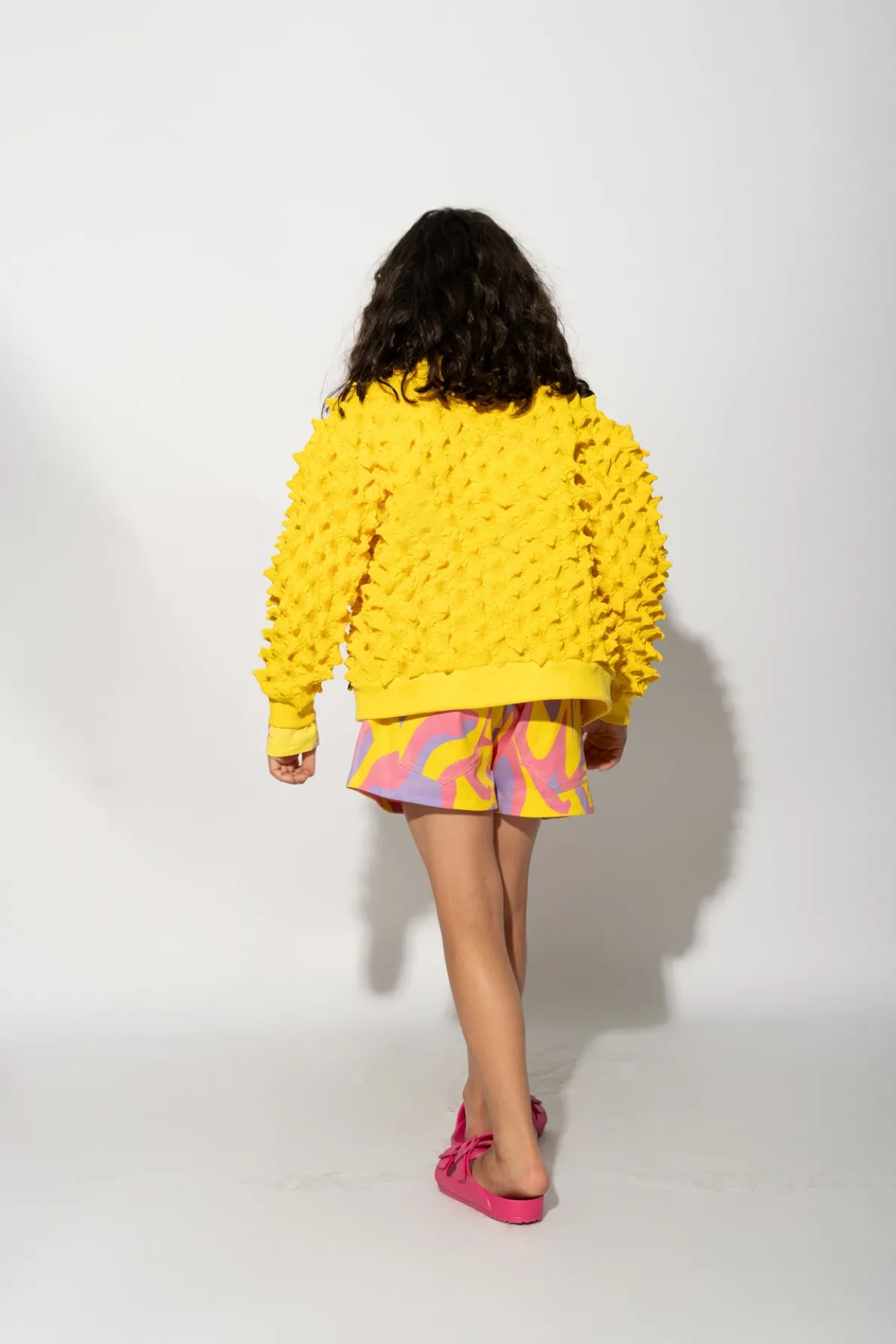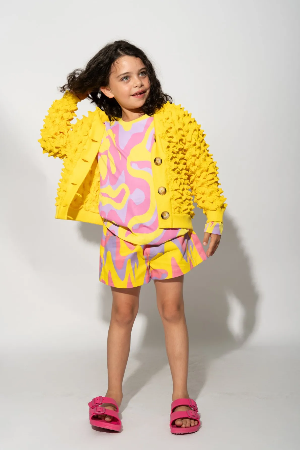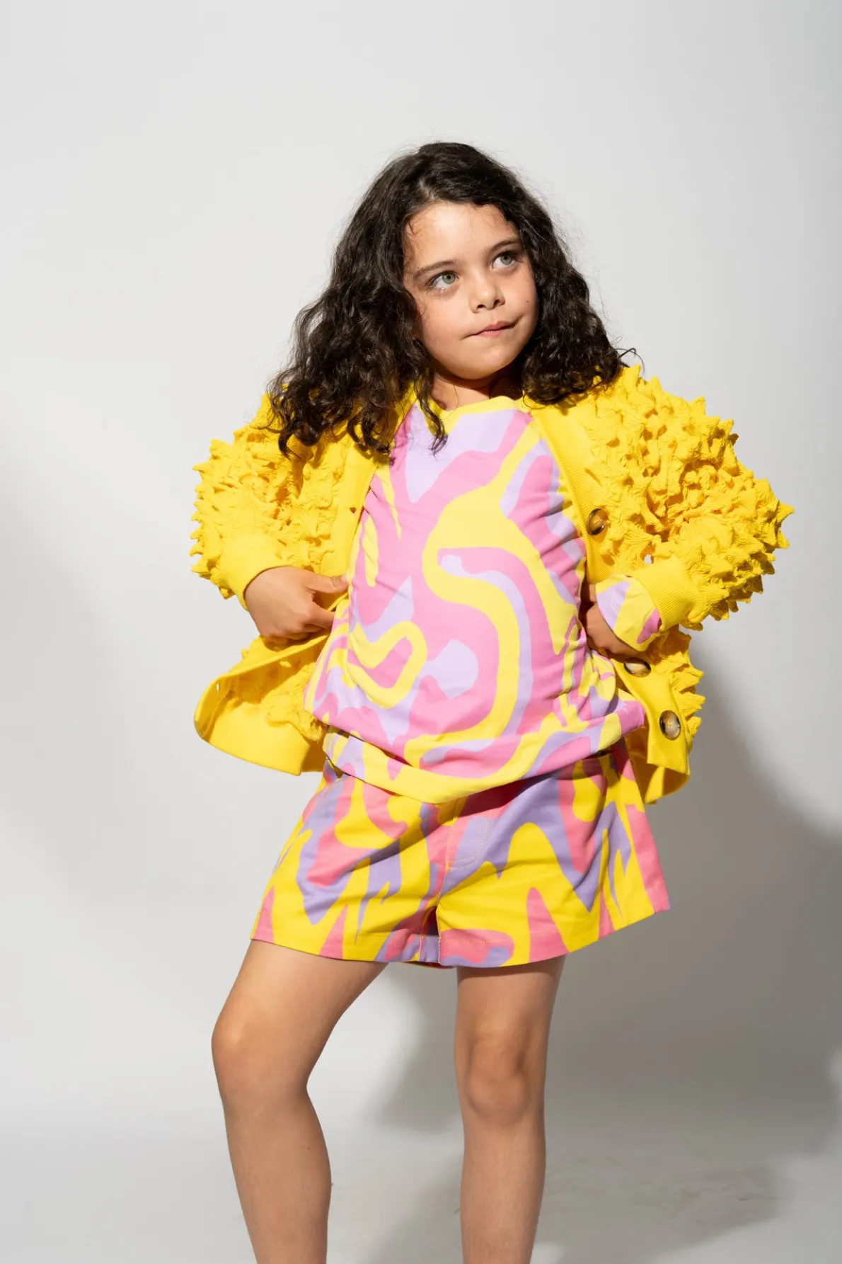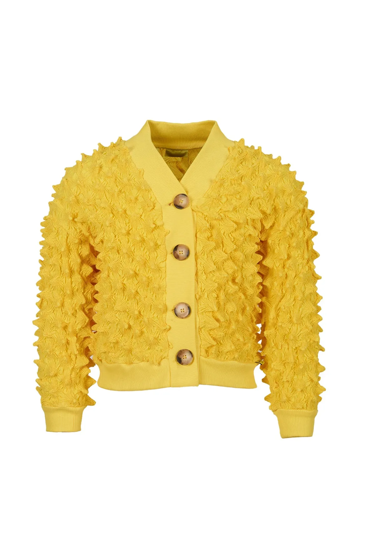 Ramp up the fun factor with this bright yellow spike cardigan! The intricate embroidered shirting, stylish long sleeves, and front buttons make it a cool addition to any kid's wardrobe. Whether they're heading to school or having a playdate with friends, this cardigan is sure to make them stand out in a crowd. • Yellow• Spikes• Long sleeves• Front buttons