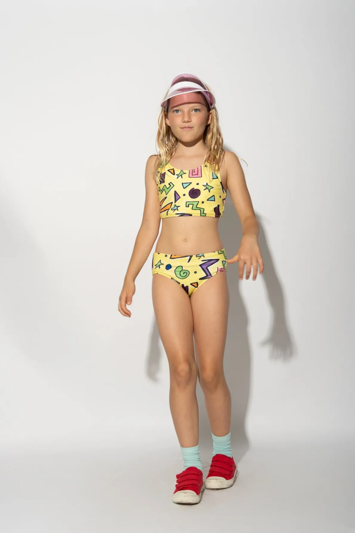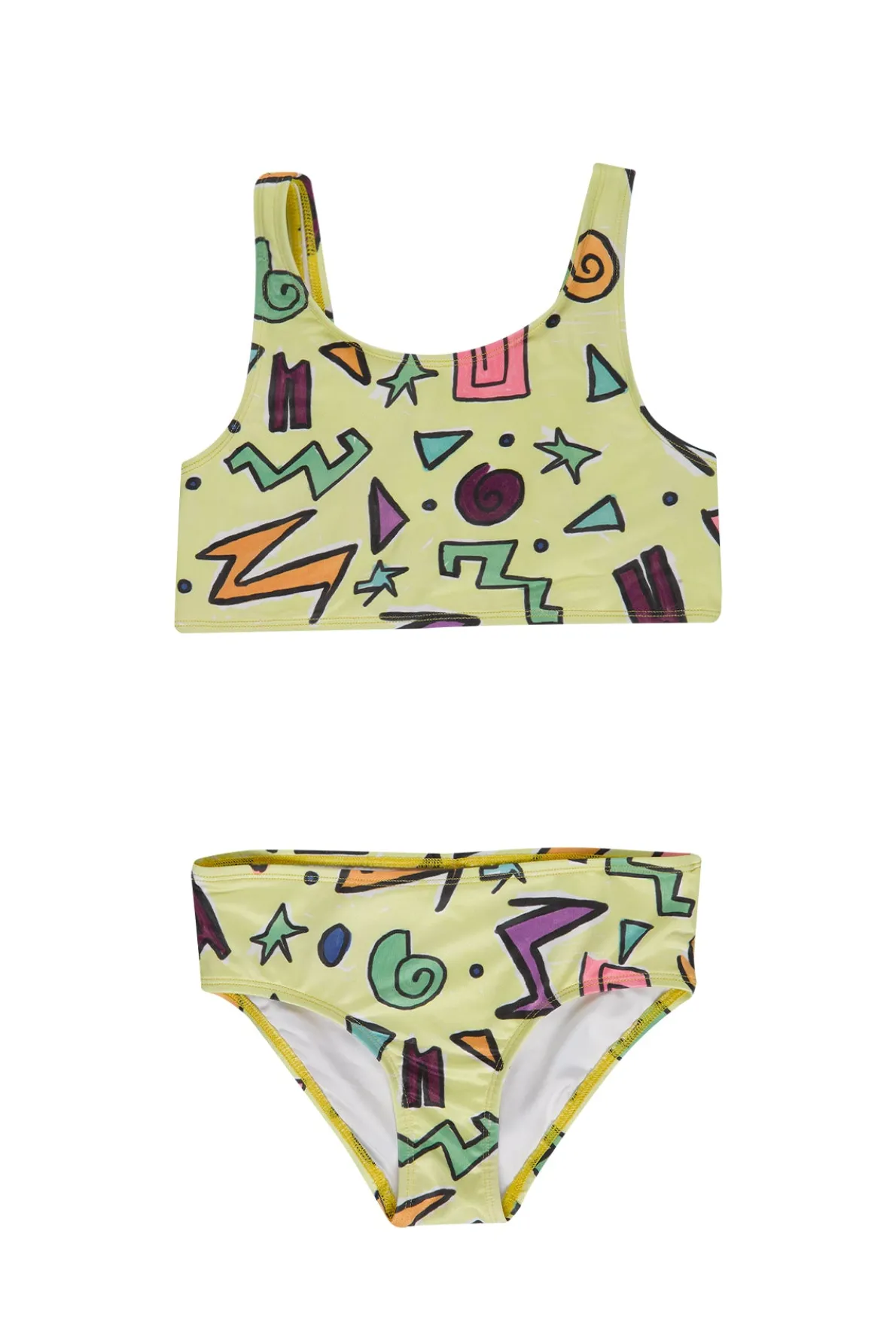 YELLOW SQUIGGLE PRINT BIKINI SET
