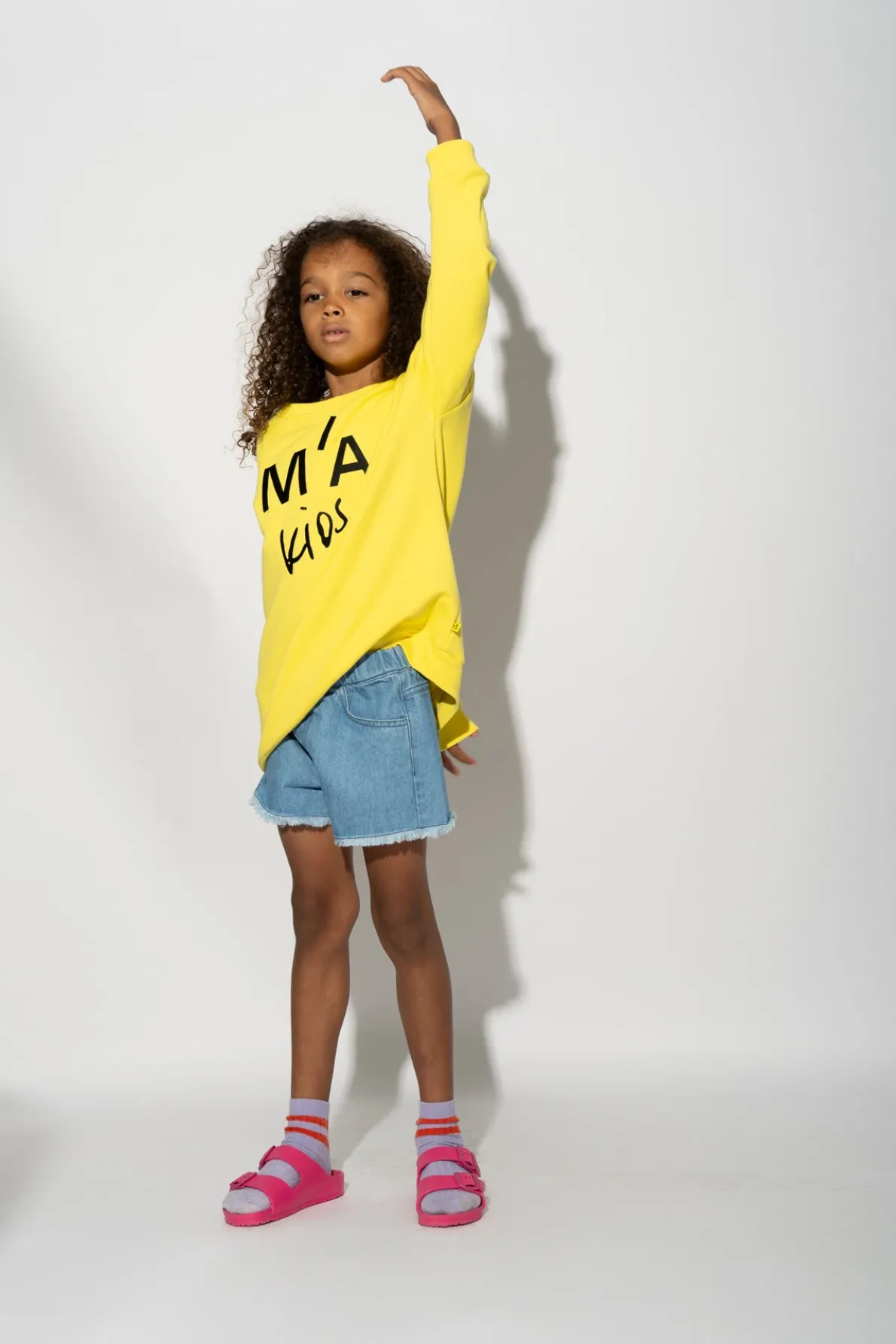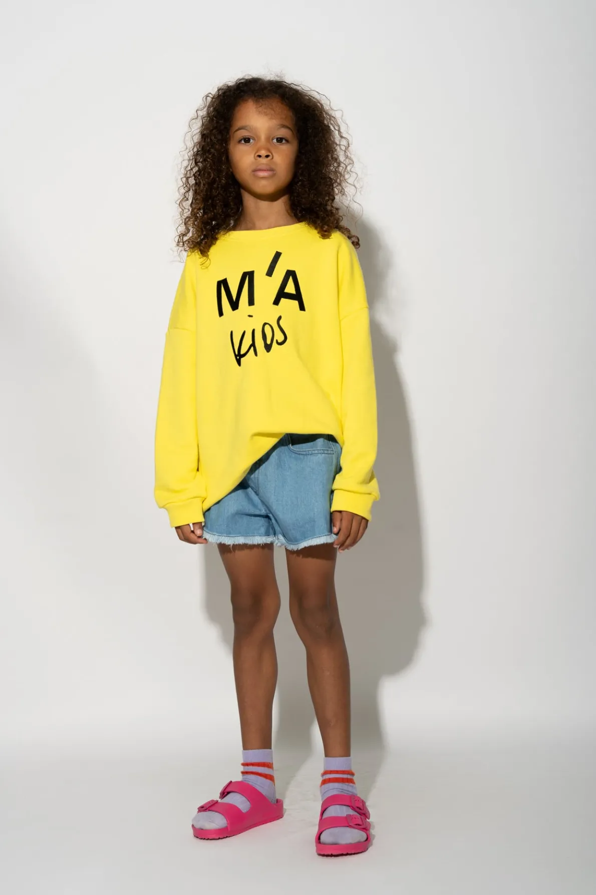 Our yellow sweatshirt is perfect for your little ones! With a soft and comfortable fleece material, long sleeves, and a classic round neckline, they'll never want to take it off. Plus, the fun and playful black M'A Kids logo on the front adds a touch of style and personality. It's an easy choice for any stylish kid on the go!• Yellow• Embroidered• M'A Kids logo• Round neck