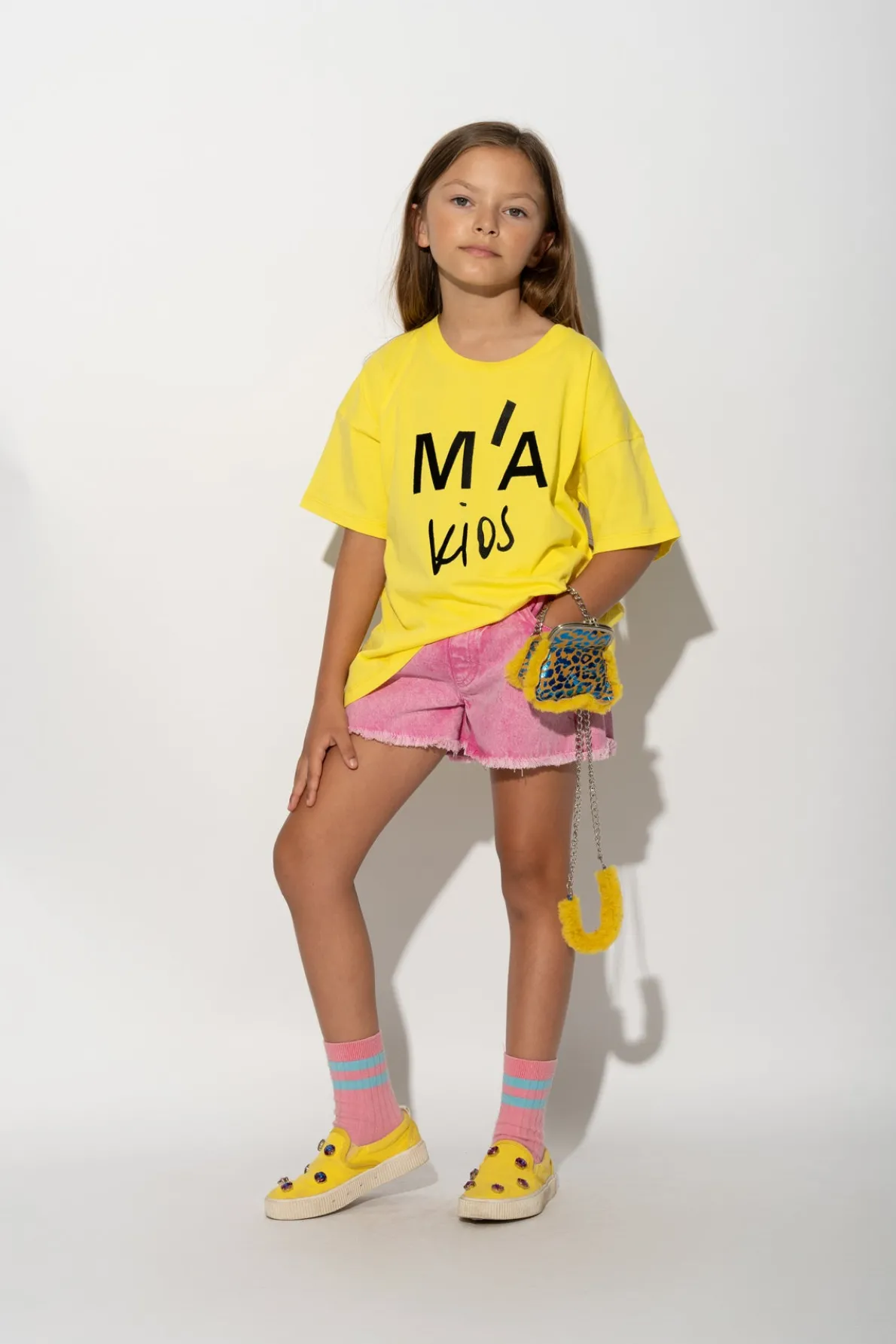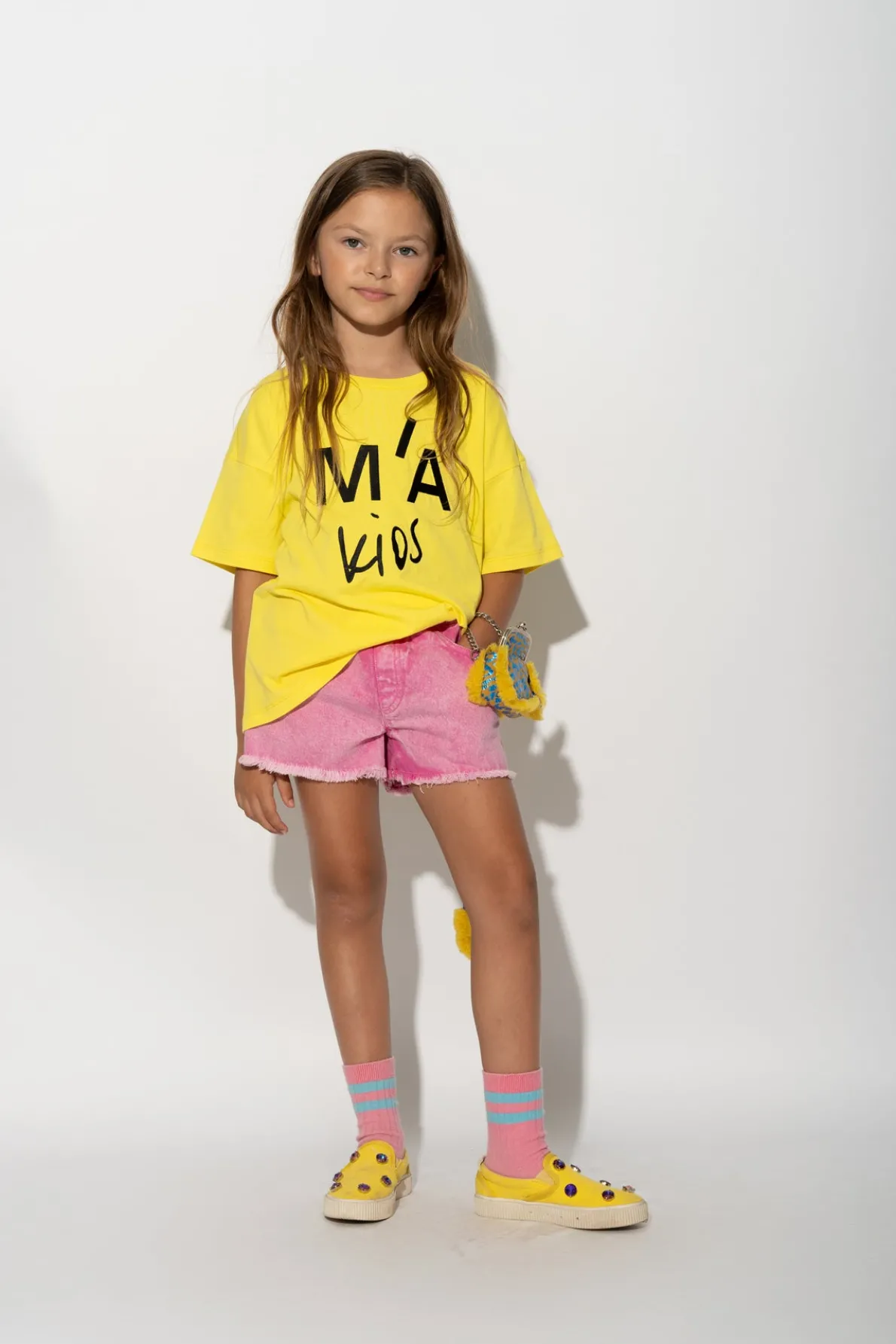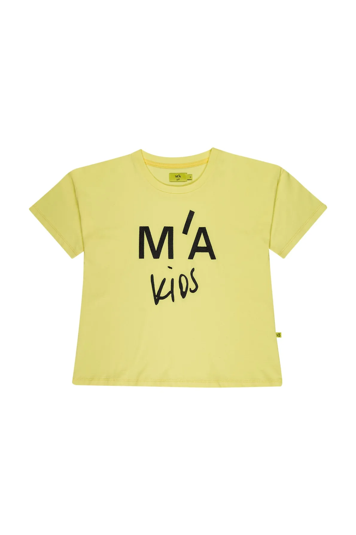 Yellow t-shirt in yellow jersey with short sleeves, round neckline and black embroidered M'A Kids logo on the front. Add a pop of colour to your child's wardrobe with this bright yellow t-shirt featuring our M'A Kids logo. With its soft jersey fabric and comfortable fit, your little one will be ready for any adventure!• Yellow• Embroidered• M'A Kids logo• Round neck